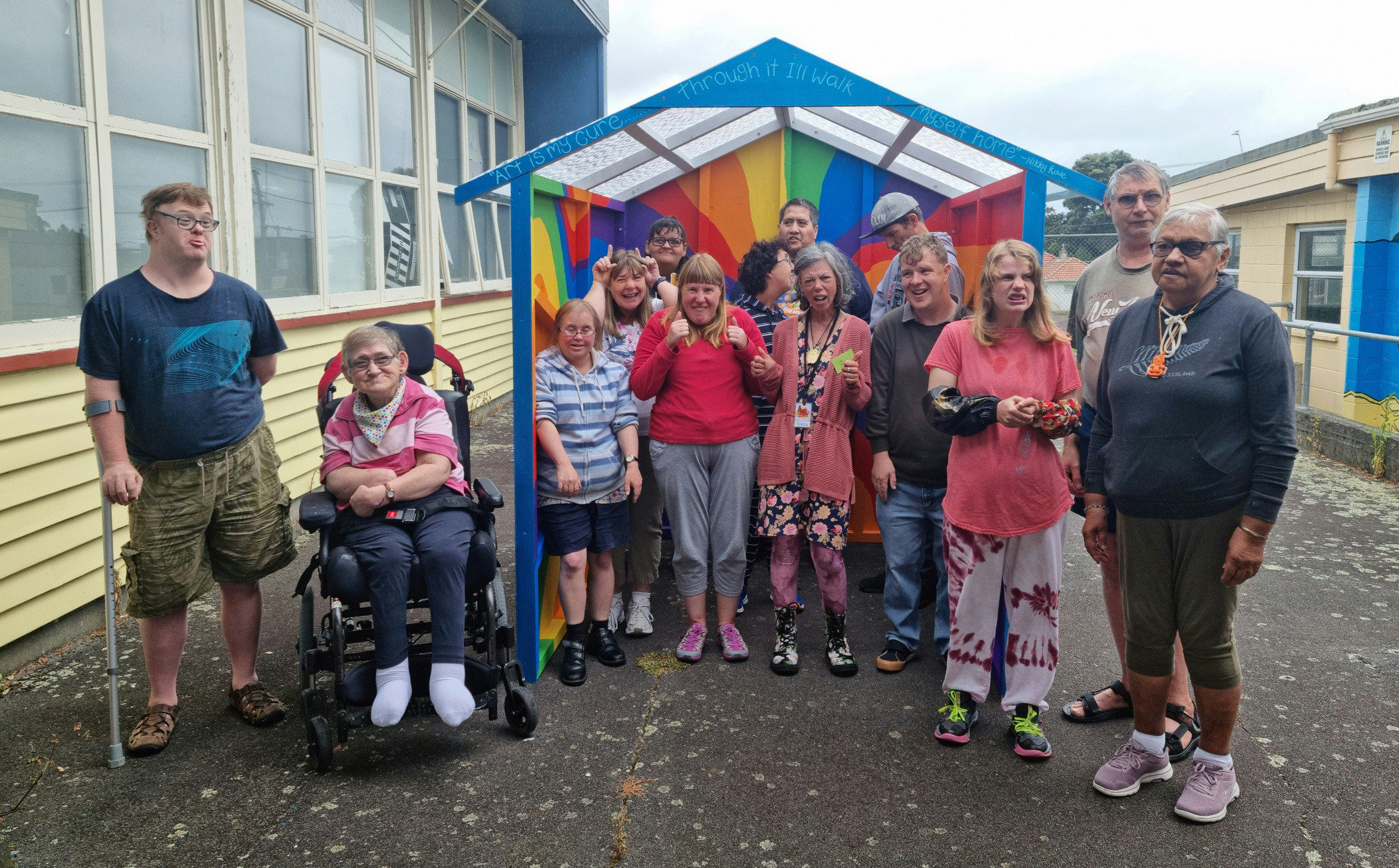 We are a safe, inclusive, accessible space where artists can be heard through their creativity and be seen as the artists that they are. Every artist is supported and encouraged to follow their own unique creative path in a variety of mediums and platforms. We support artists to enter art exhibitions, art awards, publish books, build buisnesses, create an income and to come together to create art installations. Currently we have 40 artists attend our Kāpiti and Ōtaki creative spaces.