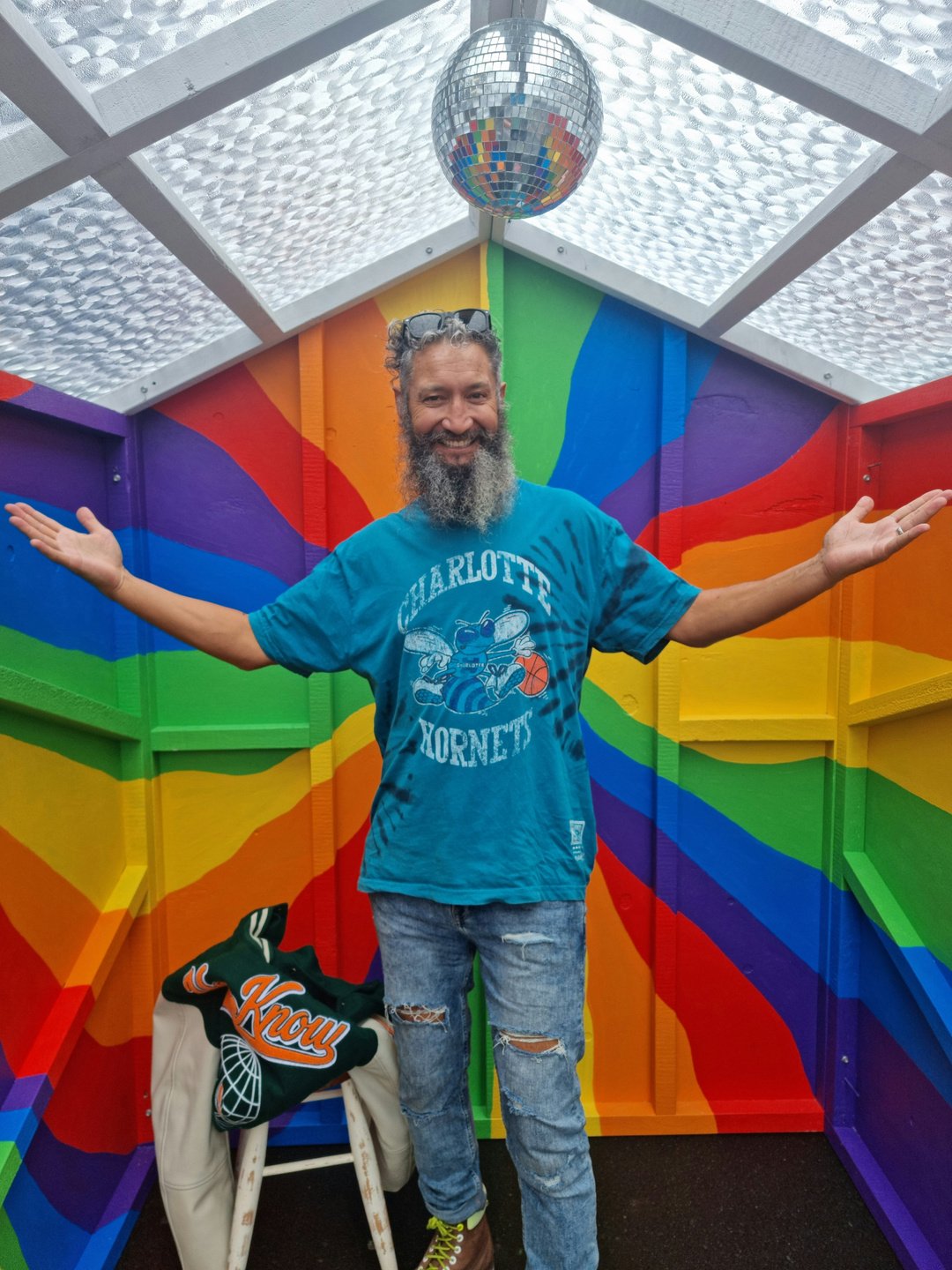 We built an accessible room with a large entrance way. The public/everyone are encouraged to look around and reflect on the different areas in their own lives with the words "How's your heart?" written in chalk on the ground.