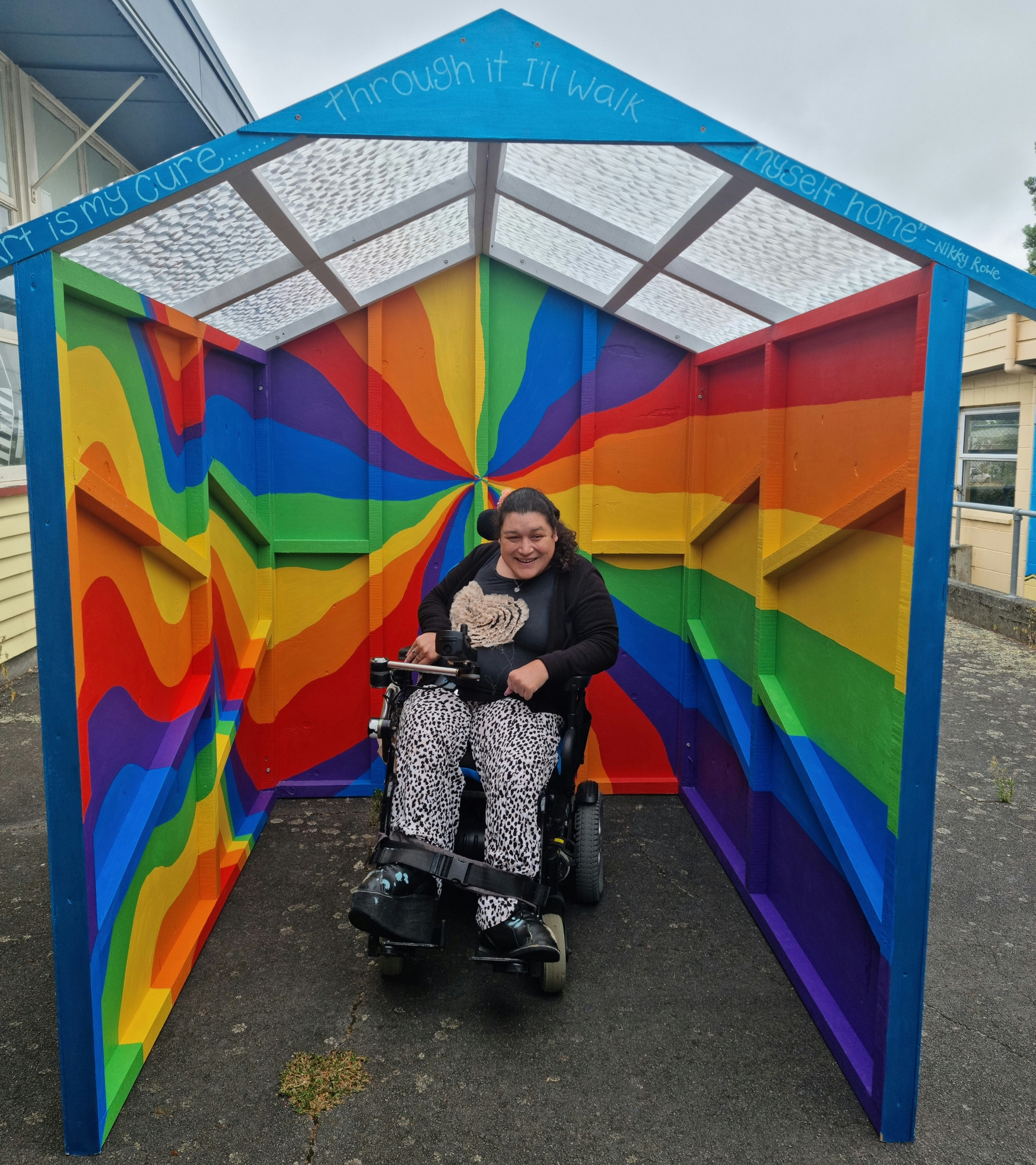 At Kāpiti/Ōtaki Art Studio we understand the importance of all the facets and we use these to remove barriers to participation to increase accessibility. This installation allows us to draw attention to the need for places where the whole person's wellbeing is met. It also highlights the importance of this concept to give an understanding about diversity in all of the facets of Hauora and Fonofale.